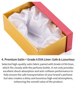 Product Name: Cardboard drawer box for perfume storage and promotion Product Size: 180*115*70 mm ; customized size available Product Material: Eco-Friendly Specialty Paper + High-Strength Cardboard + Satin Fabric + EVA Liner Pad Core Craftsmanship: Partial Hot Stamping + UV Printing + Full-Sheet Embossing Cooperation Terms: MOQ:3000units Sample Lead Time: 5-7 working days Mass Production Lead Time: 20 working days